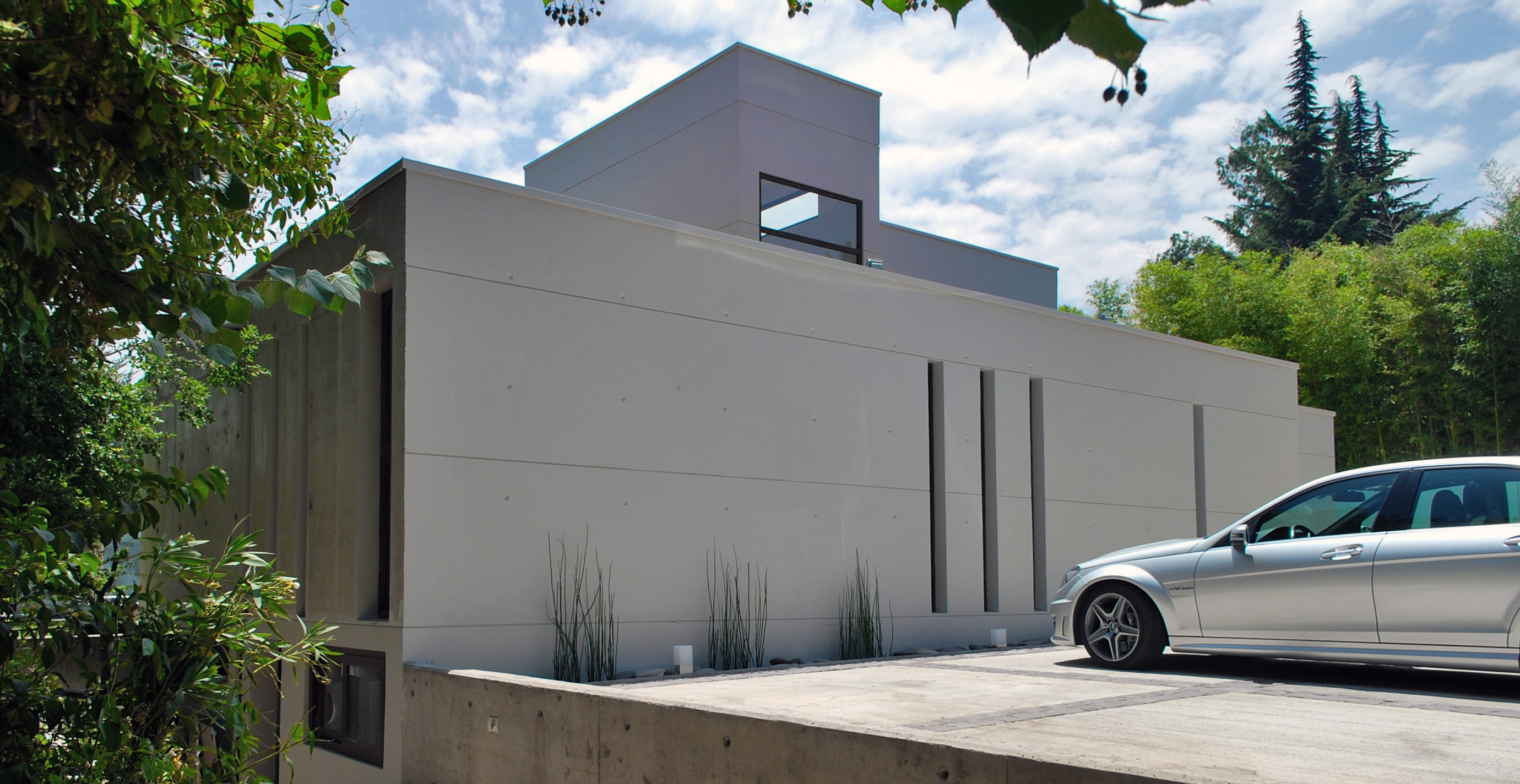 FR: Le projet consistait en la transformation d’une ancienne maison pour l’adapter à la nouvelle exigence familiale. Le volume original de deux étages a été conservé et le nouvel espace commun a été ajouté, s’articulant à la fois par l’espace de l’escalier, qui devient le nouveau centre où convergent le salon, la salle à manger et les chambres. La nouvelle façade est majoritairement opaque, offrant de petites ouvertures vers la rue, privilégiant les transparences vers le patio et la piscine. De cette façon, en plus de respecter les facteurs de sécurité demandés, une meilleure captation de la lumière du soleil du nord est assurée et les pertes du sud sont évitées grâce à l’utilisation de béton thermique.