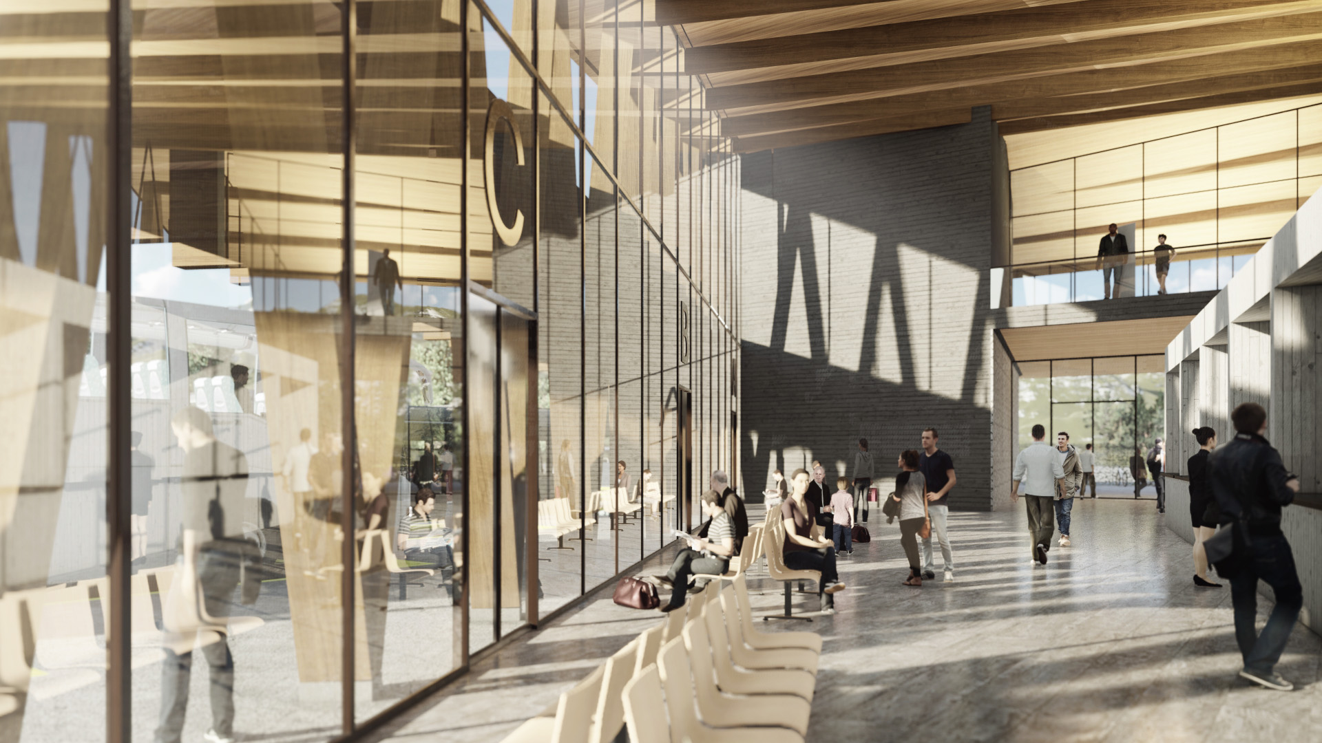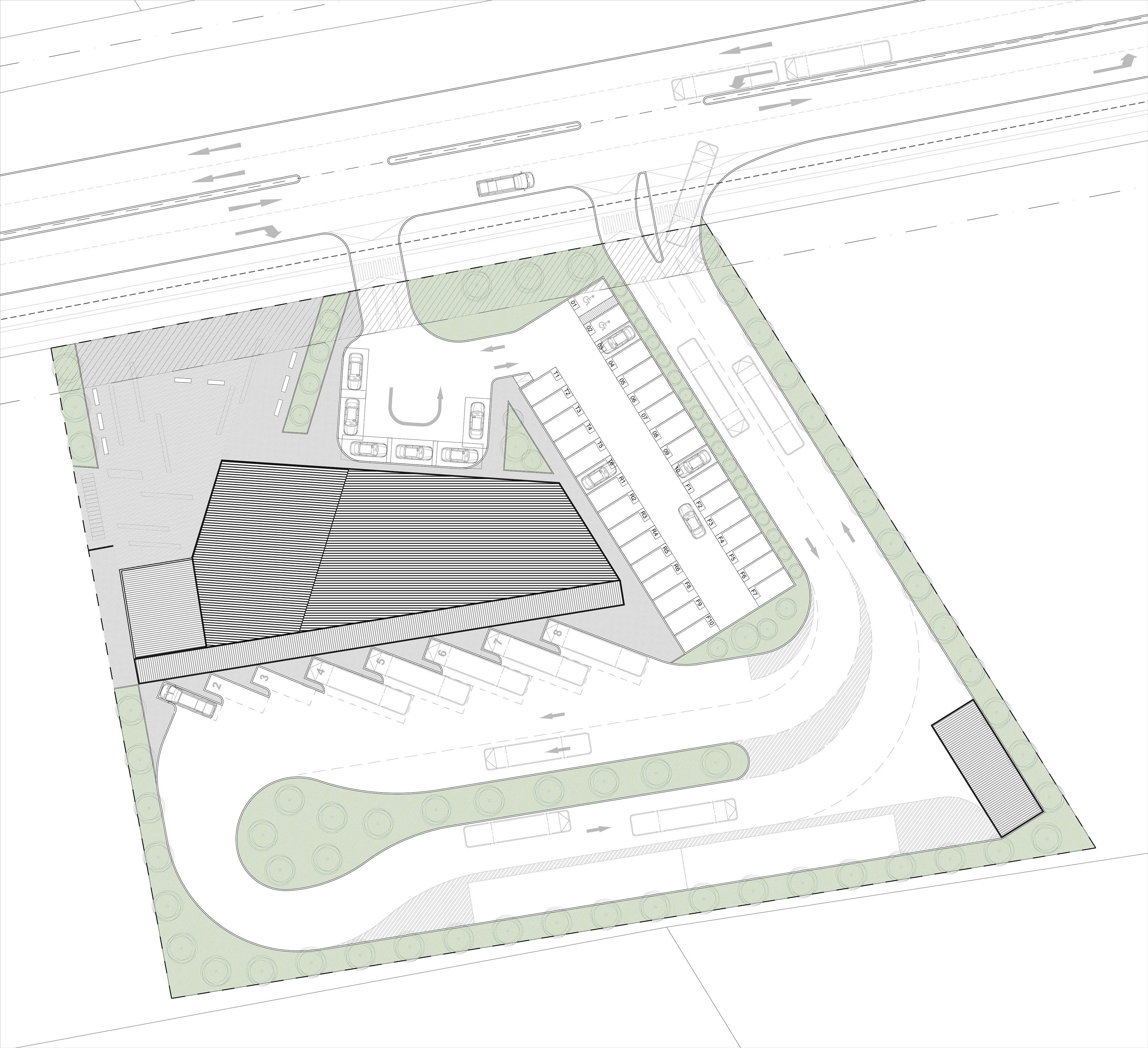 La proposition découle de la recherche de l'optimisation fonctionnelle du terrain, en implantant le bâtiment de la gare routière comme le coin qui divise et articule les différentes zones du projet, permettant un front urbain libre où se distingue la volumétrie emblématique du terminal comme point de repère à l'entrée de la ville, laissant les activités des bus cachées à l'arrière du terrain. Le projet offre une grande place citoyenne dans le secteur nord-ouest, le plus proche de la ville, en privilégiant l'accès des piétons et des cyclistes. Depuis cette place, on a une vue complète de la gare routière, de la façade principale du terminal et de l'accès protégé.
